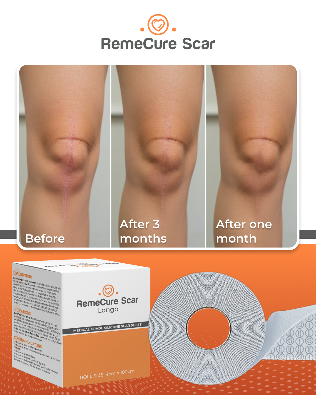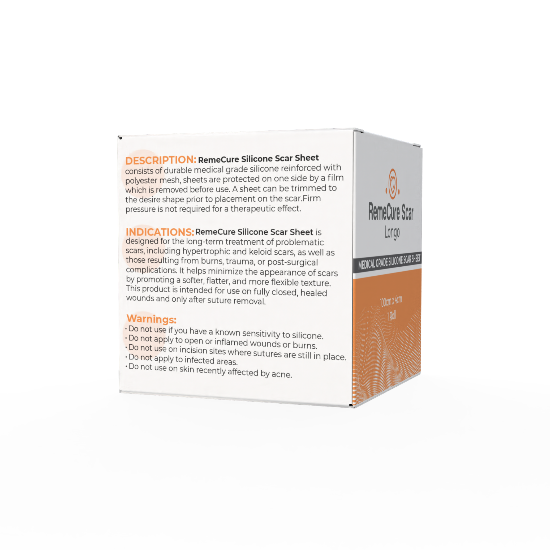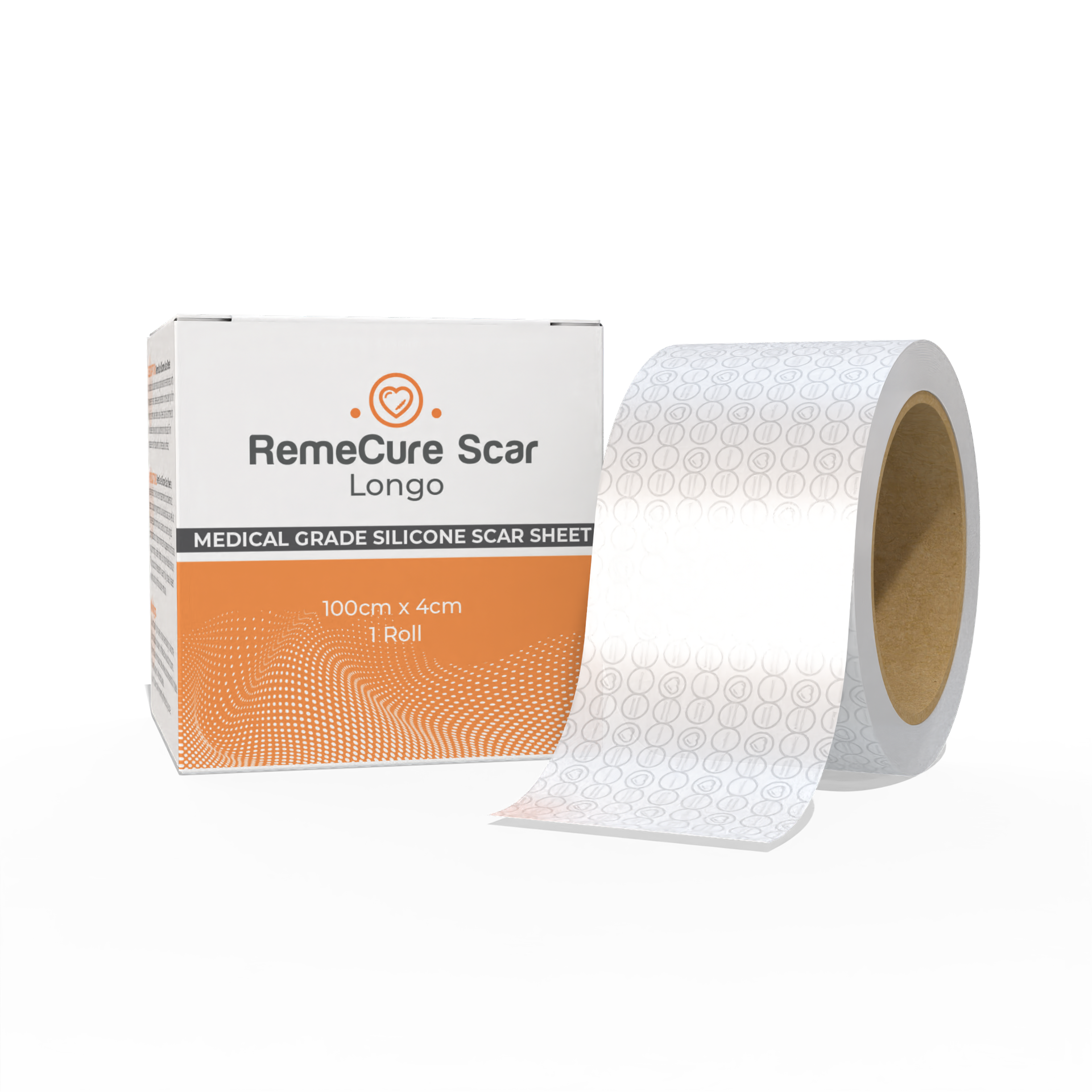 The Longo Custom Silicone Scar Roll by RemeCure is a premium medical-grade silicone sheet in roll form, developed for maximum flexibility and precise customization. Unlike fixed-size silicone sheets, Longo allows healthcare professionals and patients to cut the exact length and shape required for any linear, curved, or irregular scar.